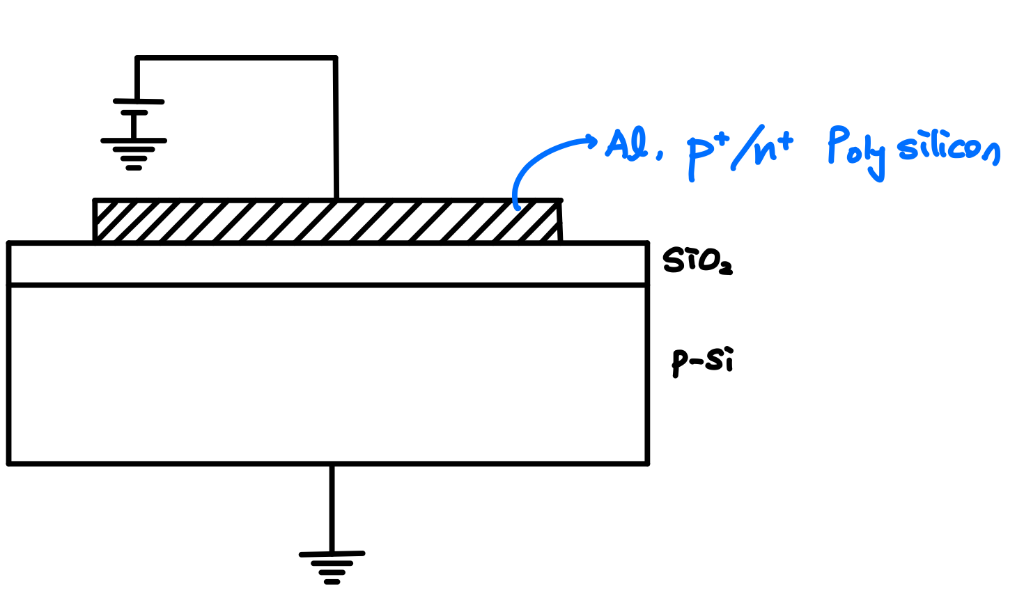 Semiconductor 위에 절연막이 올라가고 그 위에 Metal Gate가 올라가는 구조를 MOS(Metal Oxide Semiconductor) 구조라고 했었죠.