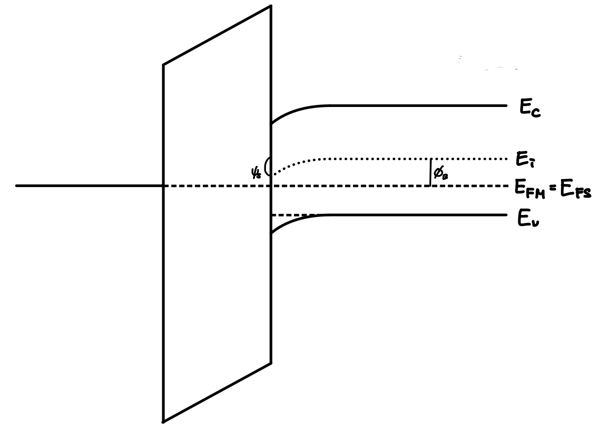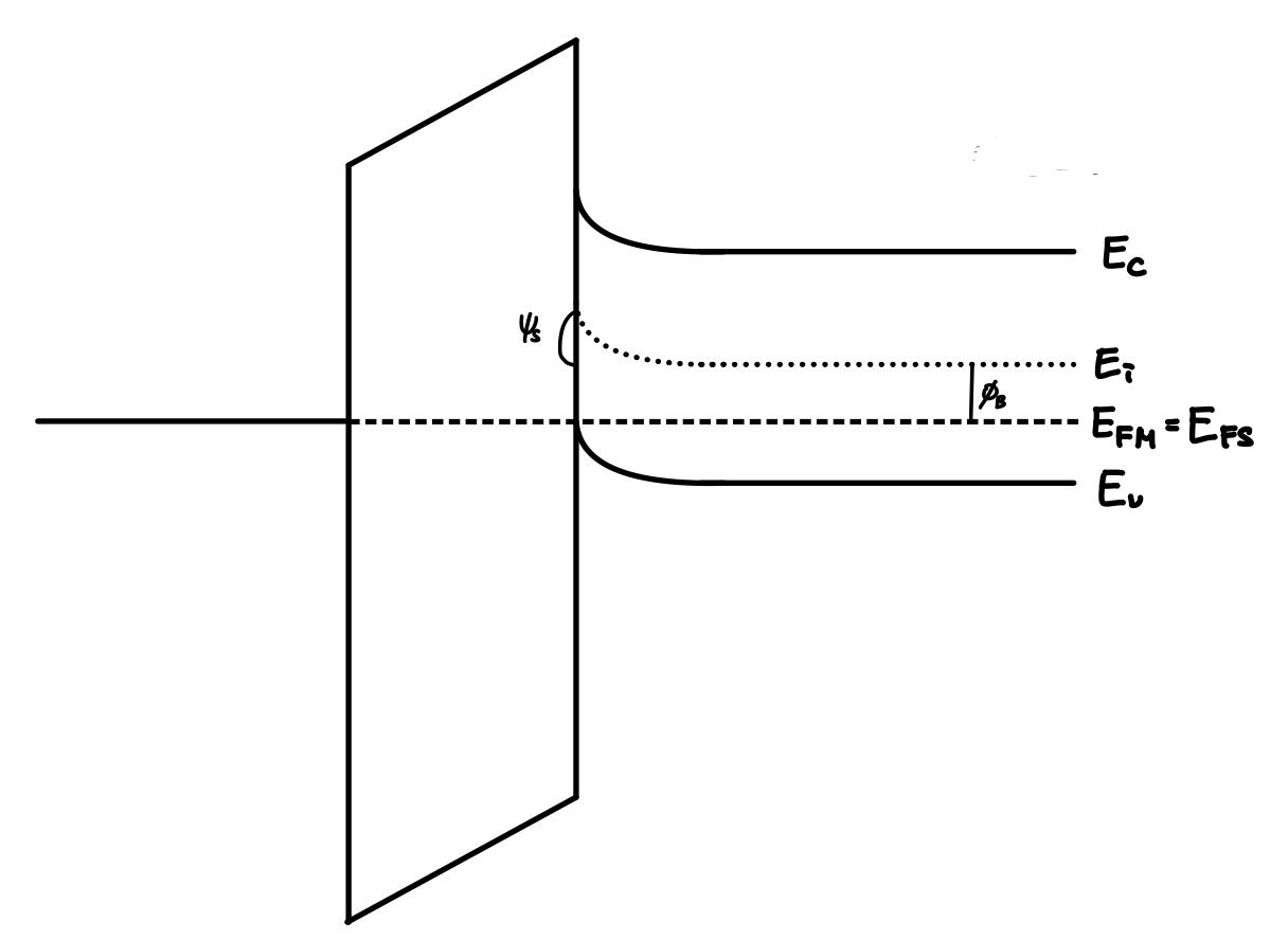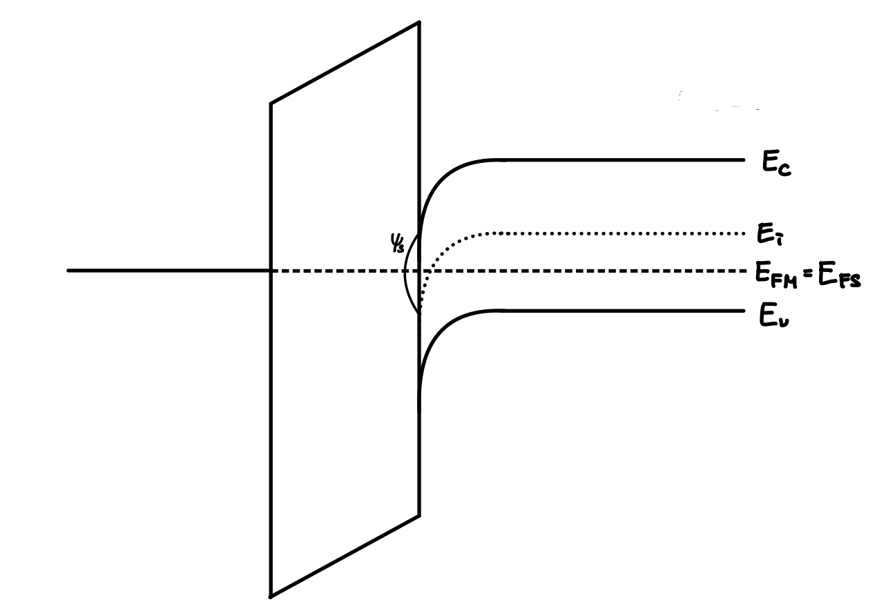 이 때 Fermi Level은 항상 일정하기 때문에 $\Psi_s$는 다음과 같이 나타낼 수 있습니다