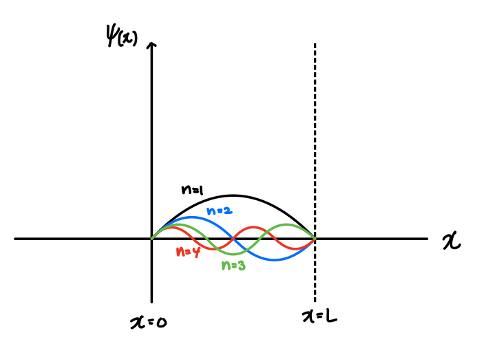 $$ \psi_n(x) = \sqrt{2 \over L} sin({n\pi x \over L}) $$
