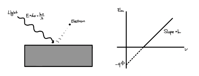 이런 에너지를 갖는 Photon을 금속에 쏘아주게 되면 Photon이 Metal에 에너지를 전달하며 Metal 원자가 최외각에 있는 전자를 방출하는 현상이 생깁니다. 이것이 바로 Photoelectric Effect입니다.